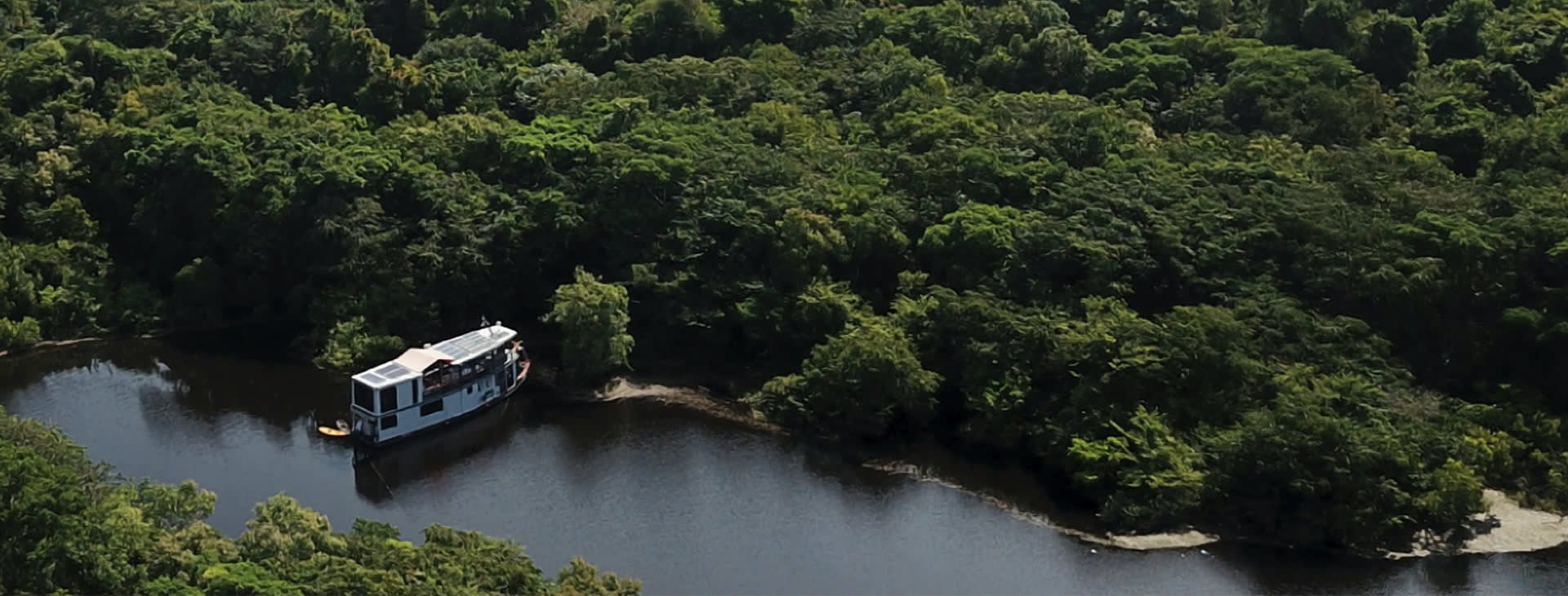 Experience the Amazon Rainforest like never before aboard the Amazon EcoBoat, a unique 6-person riverboat designed for privacy, comfort, and sustainable travel. Nestled on the Rio Negro in Brazil, this elegant, solar-powered riverboat combines traditional charm, contemporary design, and eco-conscious innovation to offer an unforgettable Amazon journey for families, friends, or small groups.