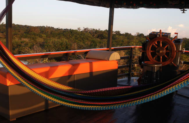 Even camp experiences are designed with care, limited to four tents that blend into the tropical landscape without the need for deforestation. Every element of the boat’s design is an invitation to connect intimately with the rainforest while ensuring its preservation for generations to come.