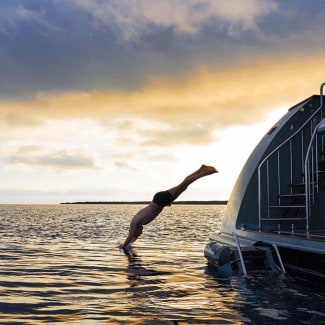 A journey aboard Aqua Lares evokes a rare sense of discovery and serenity. Guests sail through some of the most isolated marine sanctuaries on Earth in supreme comfort, surrounded by thoughtful design, fine cuisine, and the vast beauty of the Indian Ocean. Each sunrise brings a new island to explore, each night a sky filled with stars unspoiled by city light.
