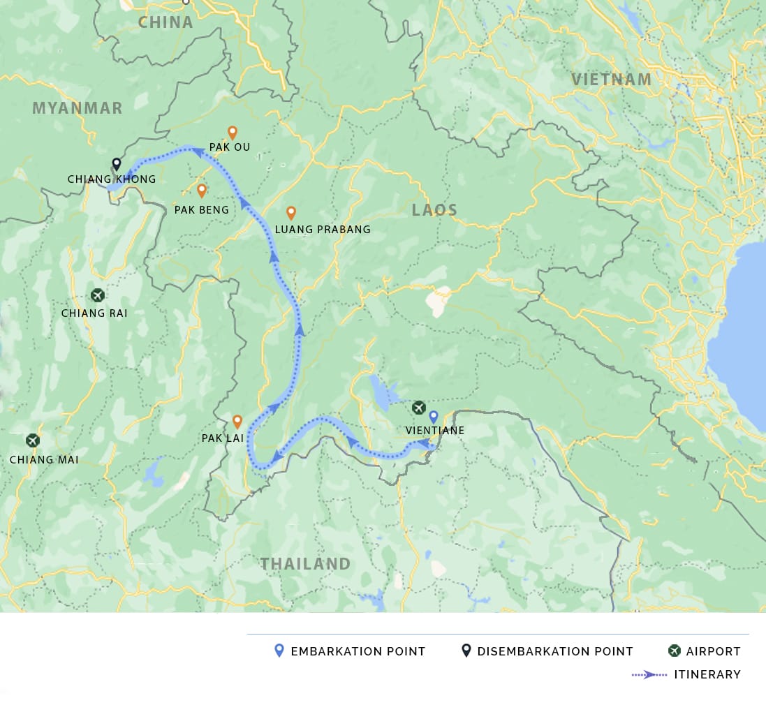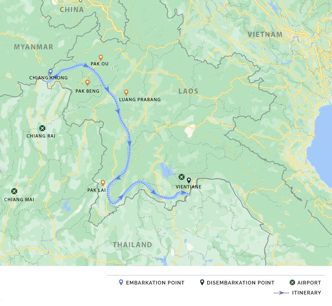 Note: Transfers included from your hotel in Vientiane to the ship in Pak Lay via Pandaw's local long-tail boat. Pick up will be at 08:00am so we advise to stay in VTE at least 1-night pre cruise. Please ensure your hotel information is provided to Pandaw so that pick-ups can be arranged.