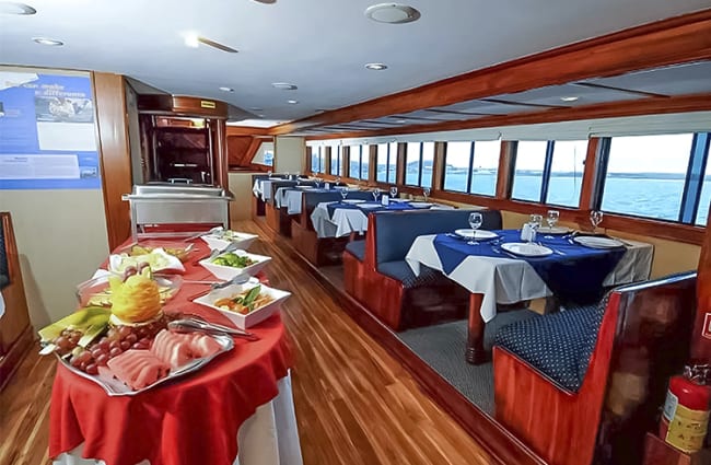 Dining is a highlight in itself, with fresh Ecuadorian and international dishes served in both the indoor dining room and the alfresco setting of the sundeck. A warm, attentive crew and expert naturalist guides round out the experience, ensuring comfort, safety, and unforgettable insights into the islands’ ecology and history. Plus, Letty offers complimentary WiFi in social areas for those who wish to stay connected while venturing into the wild.