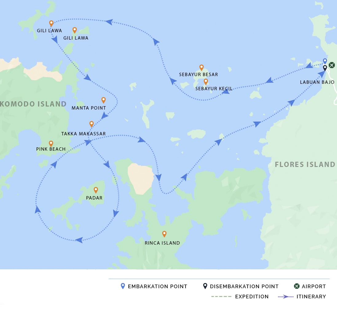PM: Welcome onboard Mutiara Laut. We depart Labuan Bajo to Sebayur Besar and Sebayar Kecil. The remainder of the day is reserved for diving or snorkeling the sights surrounding the islands, beach time, and trekking - if the tide allows.