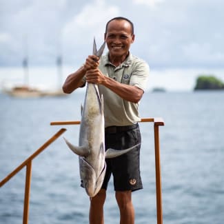 Si Datu Bua has a crew of 12 who are all experts in their respective fields and include the top-class chef, an experienced local expedition leader, and a qualified dive instructor. They know the areas they cruise better than anyone and will provide five-star service onboard and become your guides ashore, ensuring that you will want for nothing during your charter. Furthermore, the crew are kid-friendly and have an endless imagination for fun, safe adventures, and experiences.
